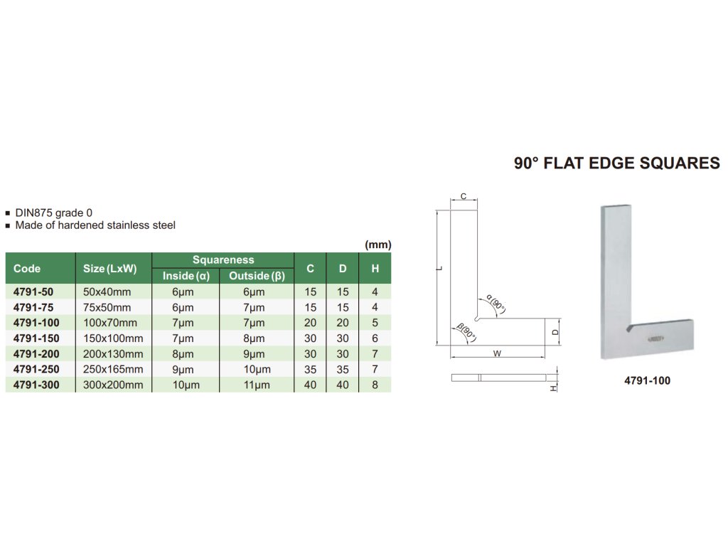Lapos élű derékszög, DIN 875/0, 75x50 mm - Insize