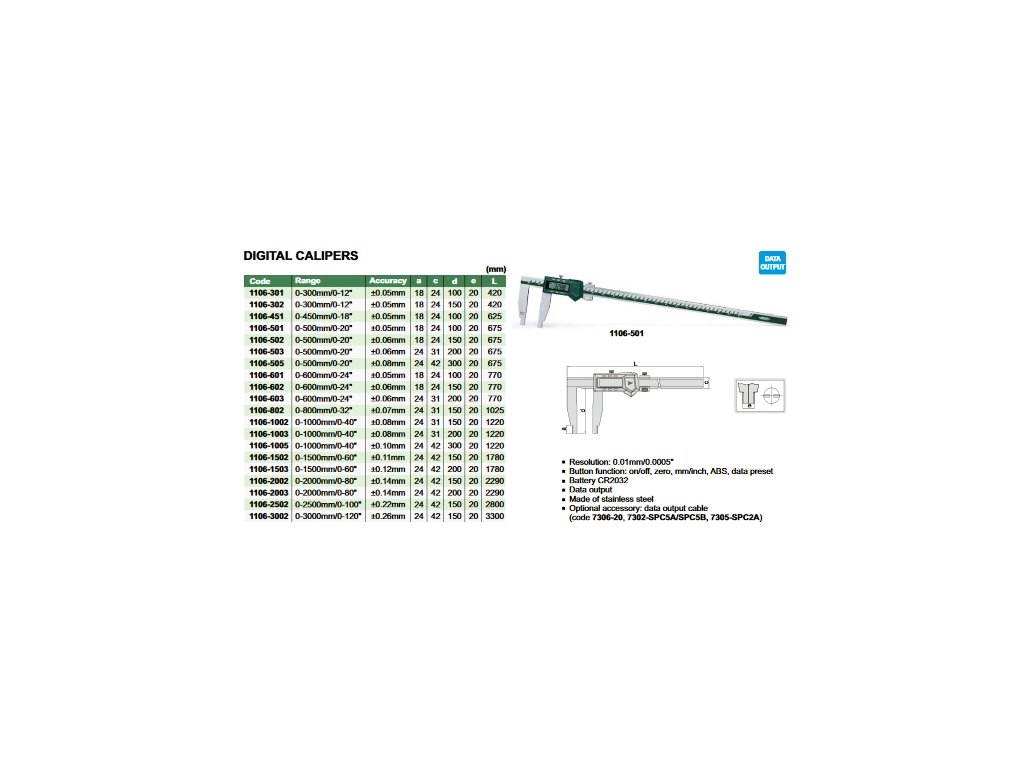 Digitális alsó csőrös tolómérő 0-600/100/0.01 mm - Insize