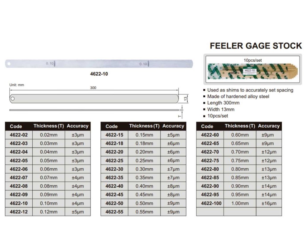 Az Insize hézagoló lemez csomag 10 darab, edzett ötvözött acélból készült 300 mm hosszú és 13 mm széles lemezt tartalmaz, és a pontos hézagoláshoz alátétként szolgál.