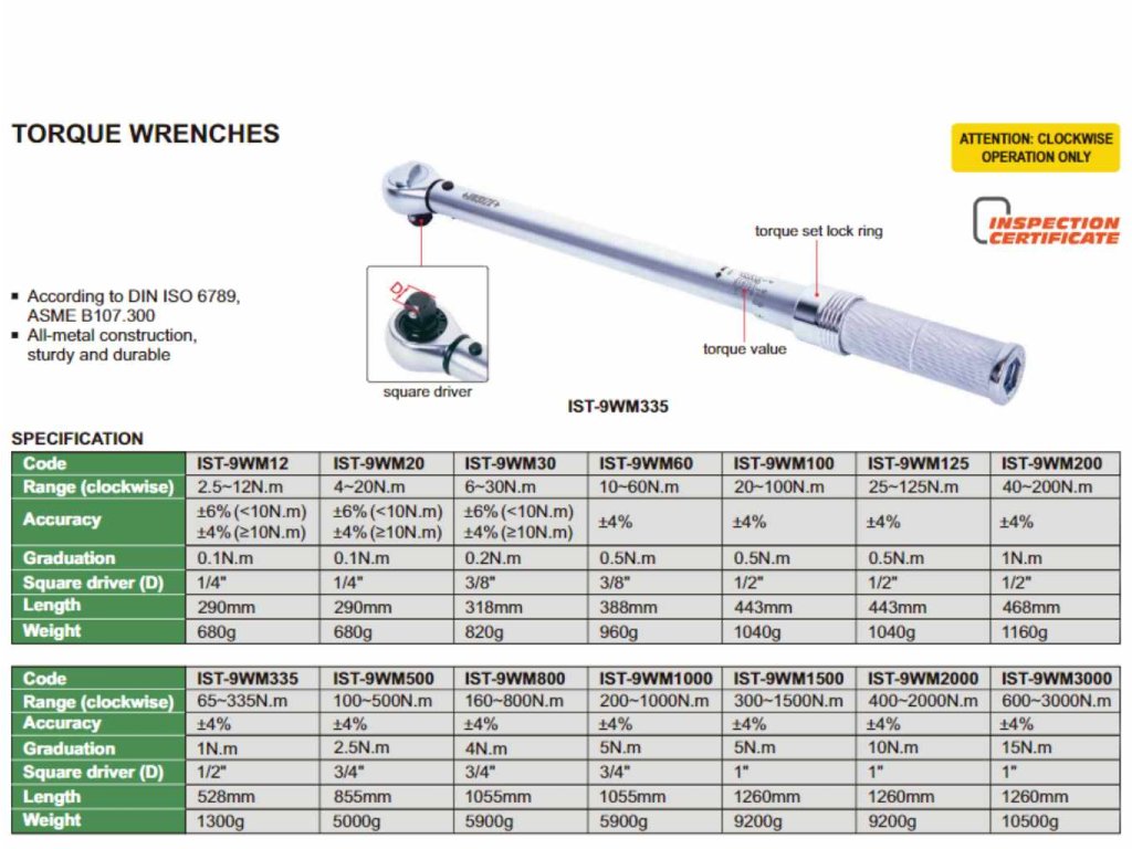 Az Insize nyomatékkulcs csak az óramutató járásával megegyező irányba használható és teljesében fémből készült.