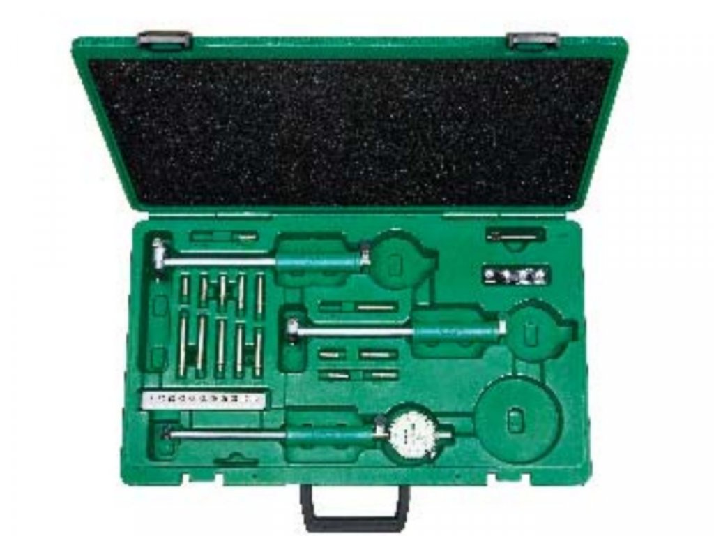 Az Insize analóg mérőórás furatmérő készlet 3 furatmérővel (18-35 mm, 35-50 mm és 50-160 mm) 18-160 mm tartományú, 0-10 mm tartományú és 0.01 mm osztású mérőórával rendelkezik.