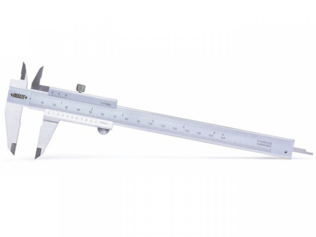 Az Insize sztenderd nóniuszos tolómérő 0-200 mm tartományú, 0.05 mm osztással, lapos mélységmérővel és rögzítő csavarral rendelkezik.