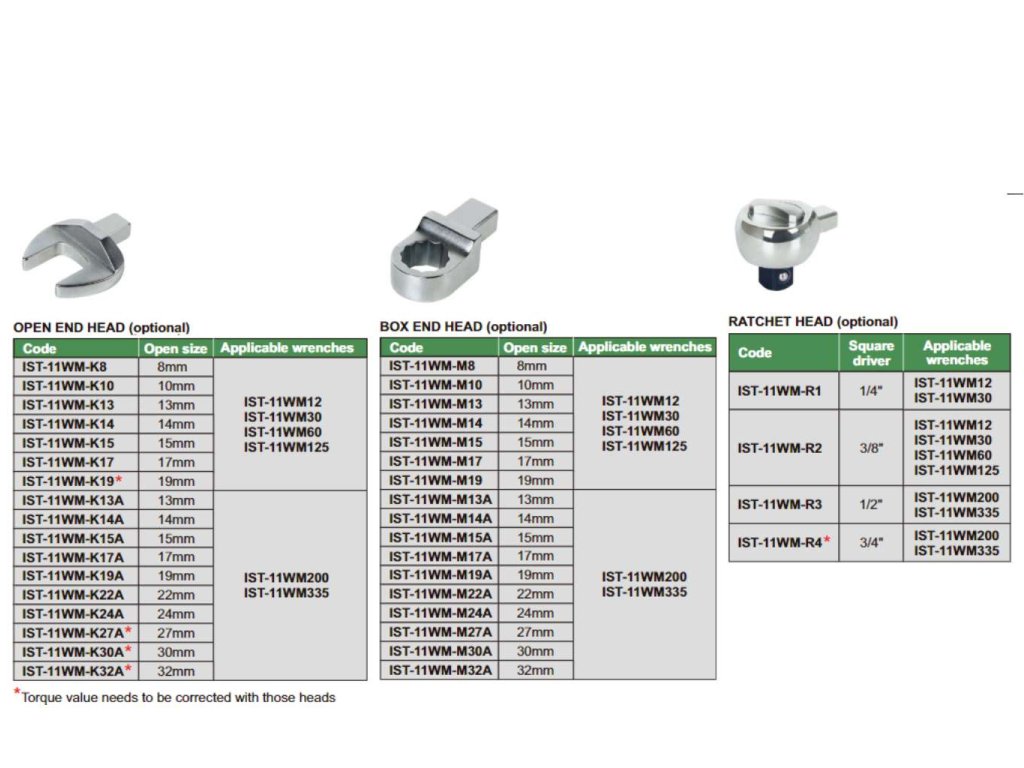 • Használható az IST-11WM200 és IST-11WM335 nyomaték szárakkal